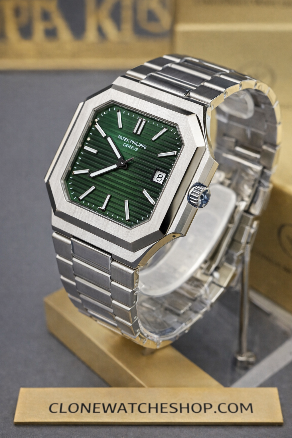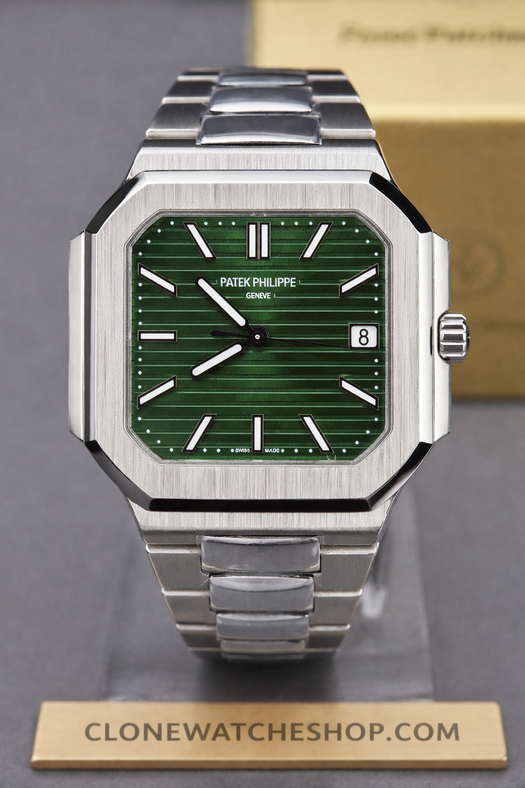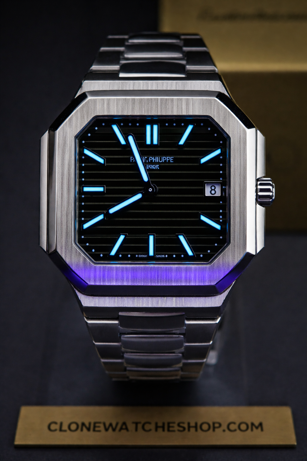 High-Polish Stainless SteelThe iconic square bezel with eight exposed screws is polished to a mirror finish. It is seamlessly integrated into the case curves, ensuring no sharp overhangs.