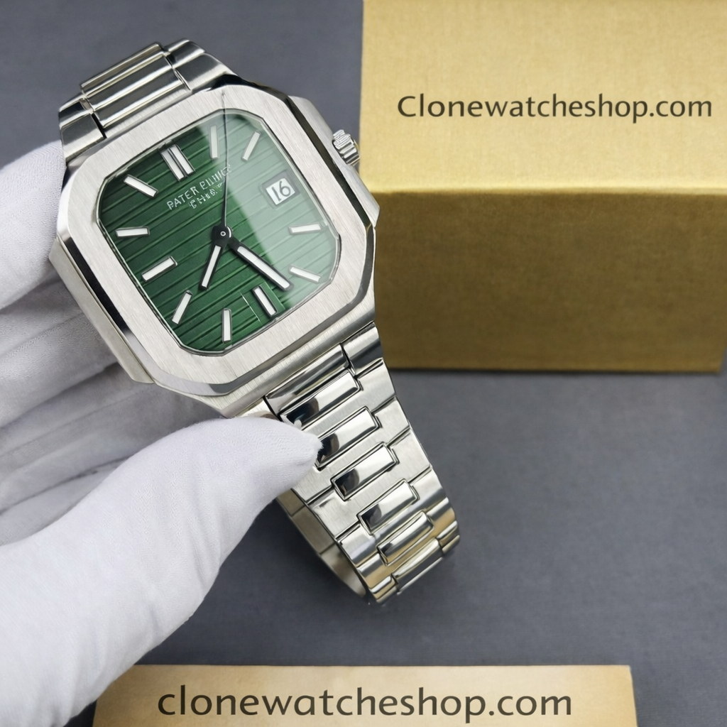 Gradient Green SunburstThe dial features a smoked green gradient that fades to black at the edges. The Roman numerals are applied with high-gloss silver ink, offering excellent contrast against the sunburst texture.