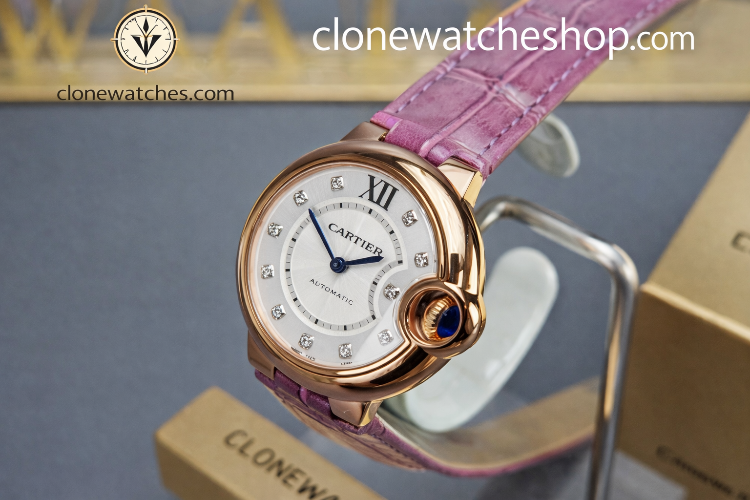 - Case & Band: 18k Rose Gold Plated on 316L, Brown Leather.