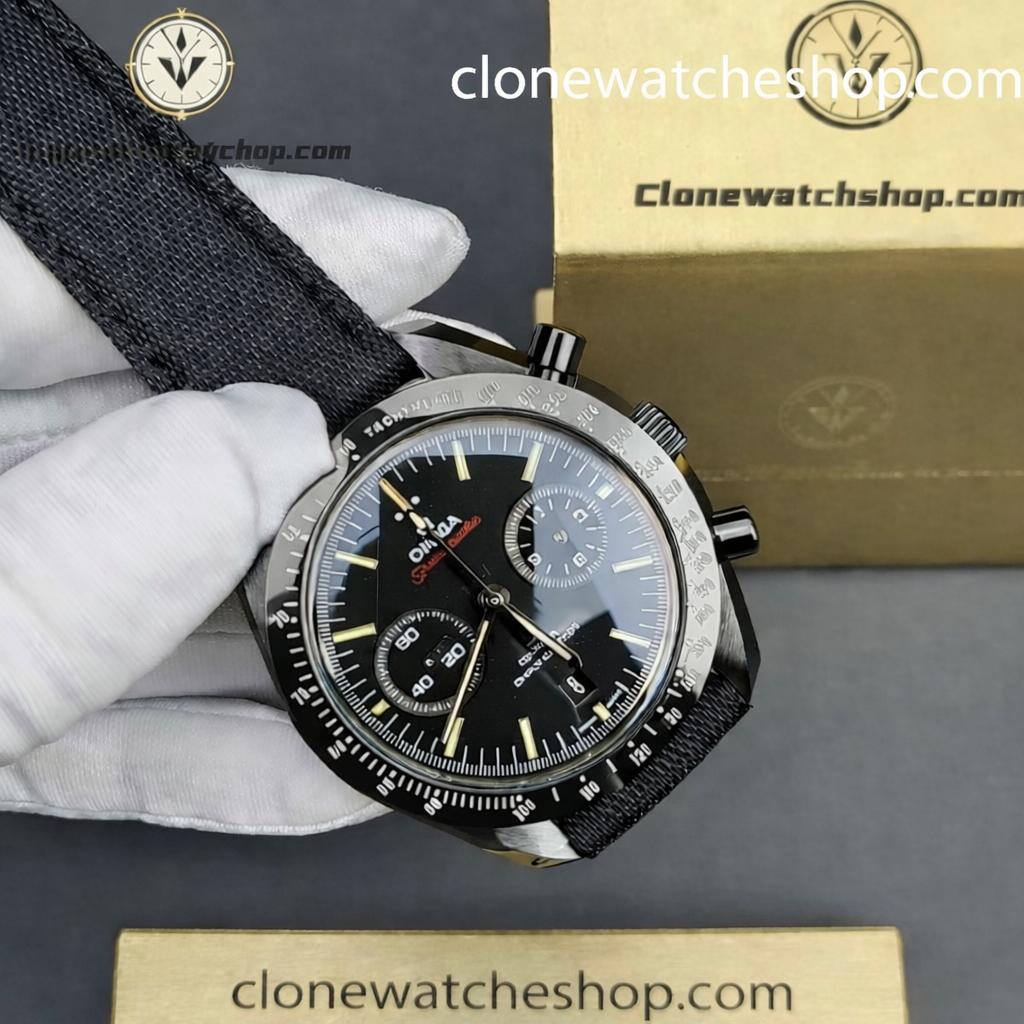The black ceramic legend. Featuring a Full Ceramic Case (No Inner Steel Tub), functioning Co-Axial Chronograph, and tactical nylon strap.