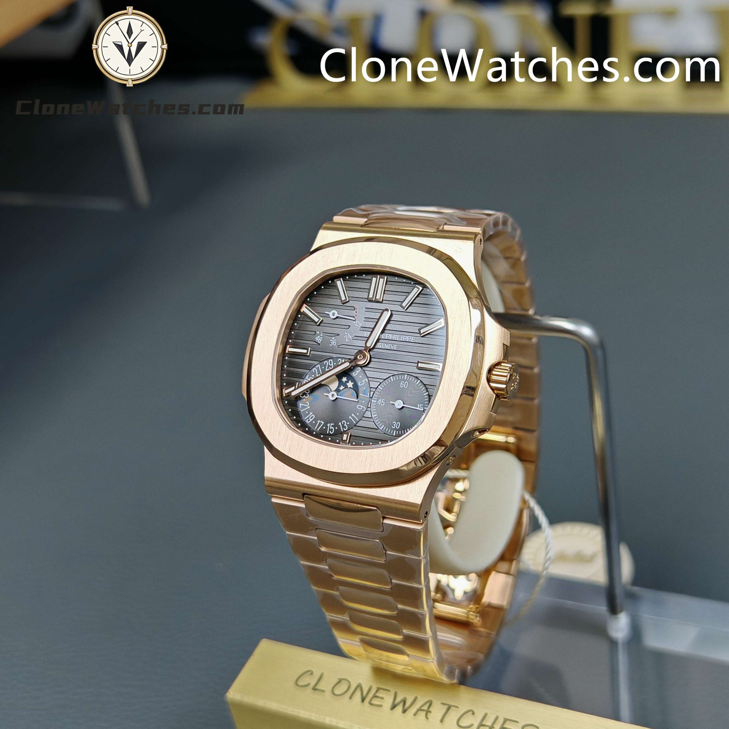 Super Clone Watches – Patek Philippe Nautilus Moon Phase 18K Rose Gold 5712