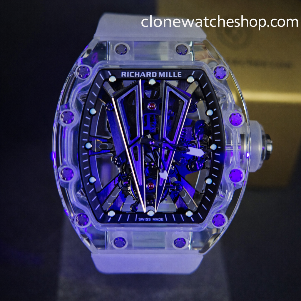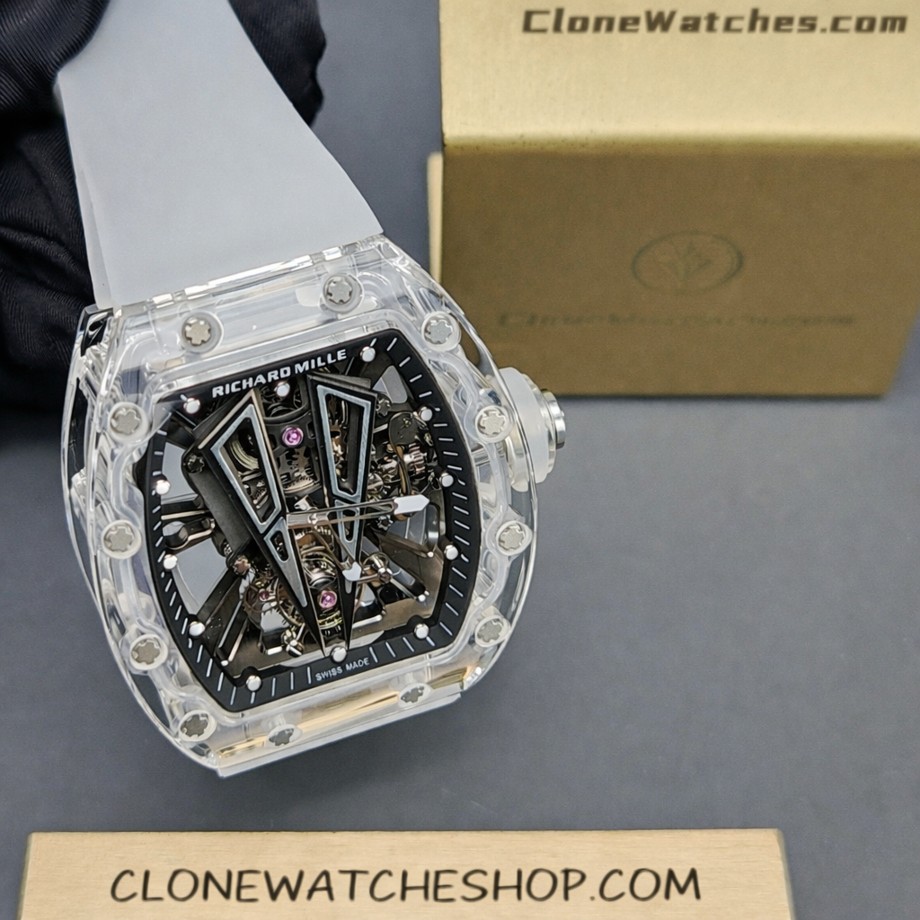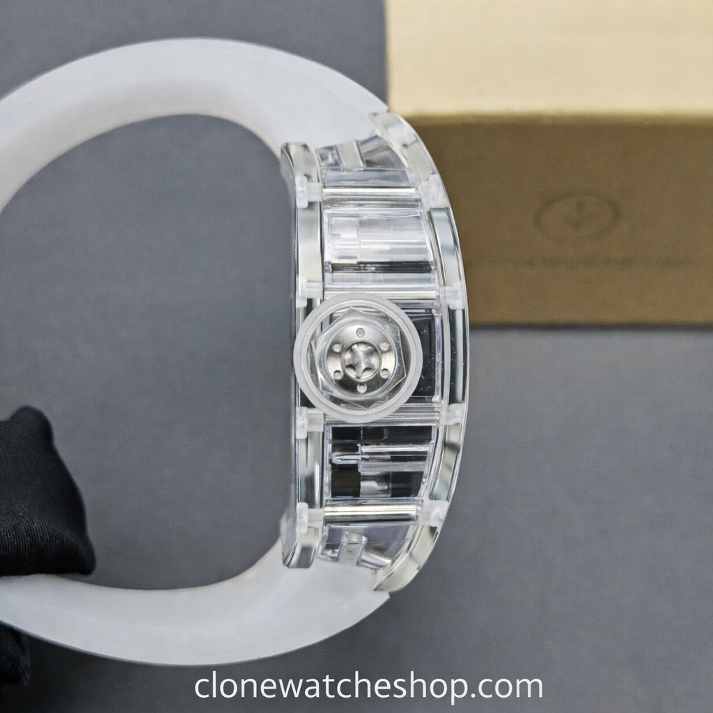 Richard Mille RM 027 – 03 Super Clone Watches Tourbillon has a fully transparent case, forming a technically coherent and visually indivisible whole. The integrated bottom plate and case are integrated into one, enhancing rigidity and impact resistance.