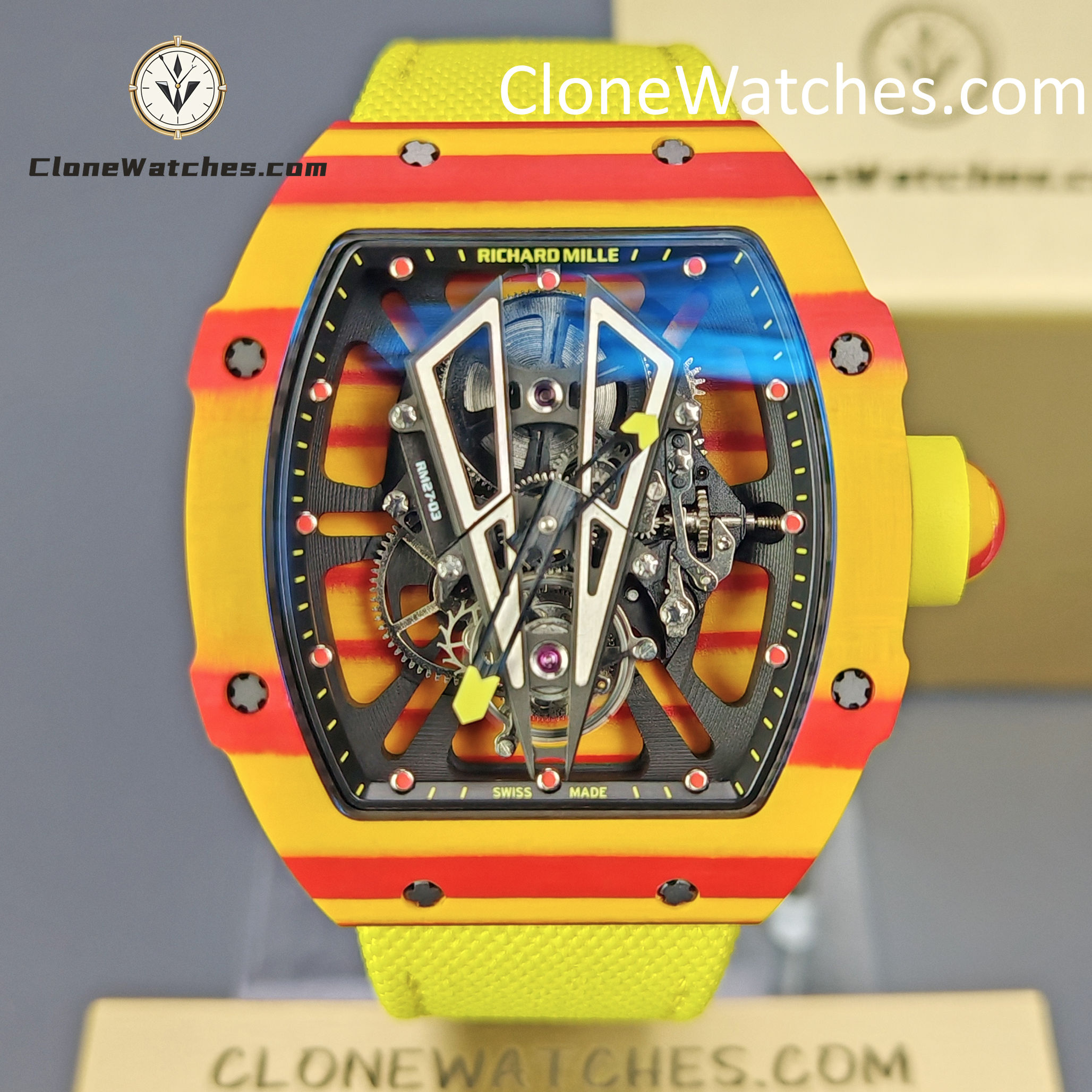 Richard Mille Super Clone Watches 1:1 RM 027 – 03 Tourbillon Rafael Nadal Yellow Strap