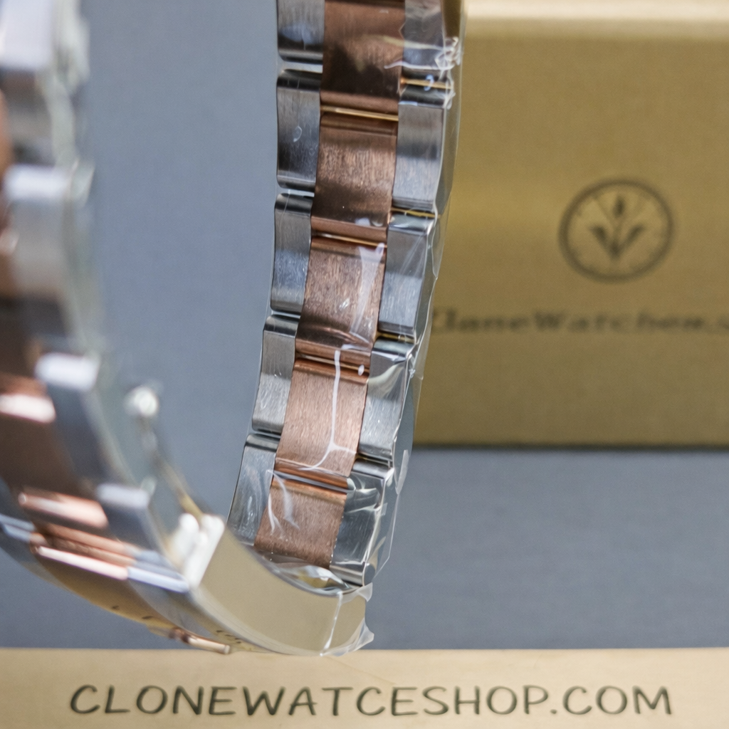 This Super Clone Watches edition features a 36mm Oyster case with a fluted bezel finished in rich gold tone, paired with a perfectly proportioned two-tone Jubilee bracelet. Each bracelet link is individually polished and brushed to match the original texture, providing a comfortable fit and refined appearance on the wrist.
