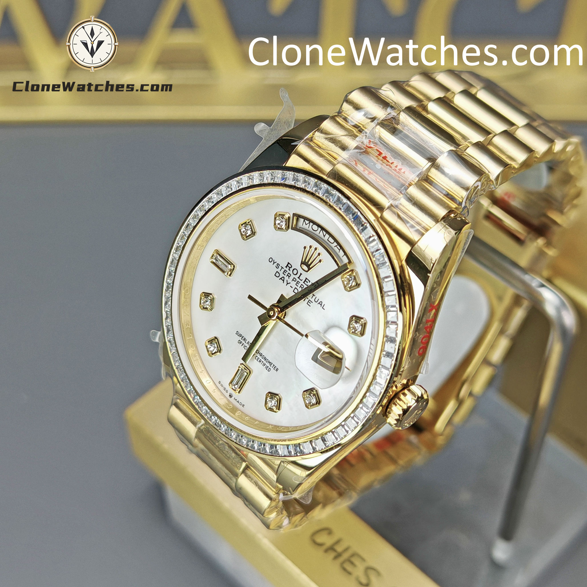 Model Rolex Super Clone Watches Day-Date Mother of Pearl Diamond Dial m128398tbr-0004