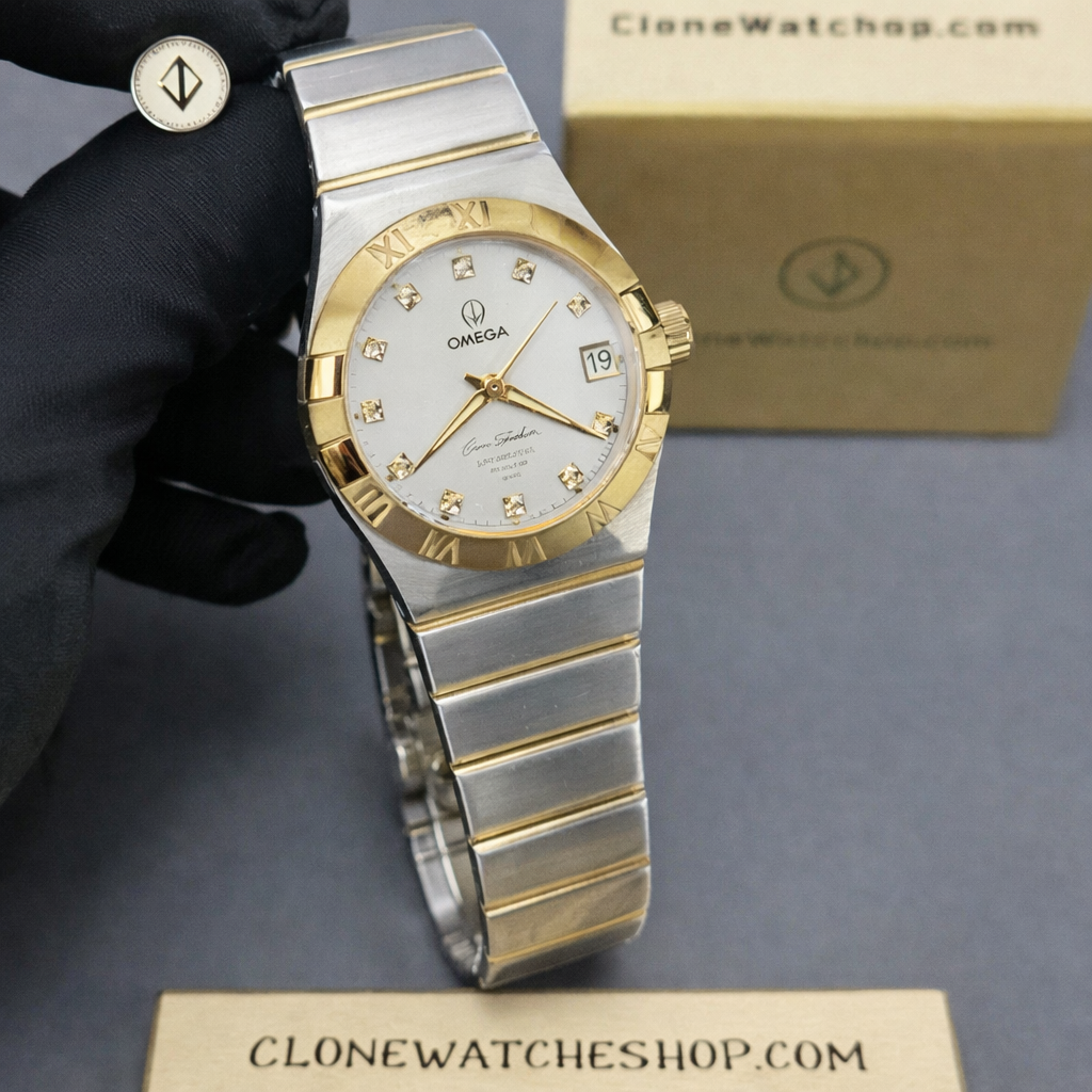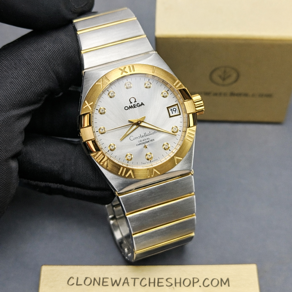 This 1:1 Super Clone Day-Date combines the commanding elegance of a green dial, the brilliance of a diamond bezel, and the presence of the iconic President bracelet—making it a standout choice within the world of Super Clone Watches.
